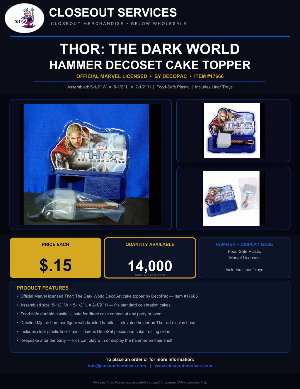 Thor: The Dark World Hammer DecoSet Cake Topper โ€” $.15 Each | 14,000 sets Available